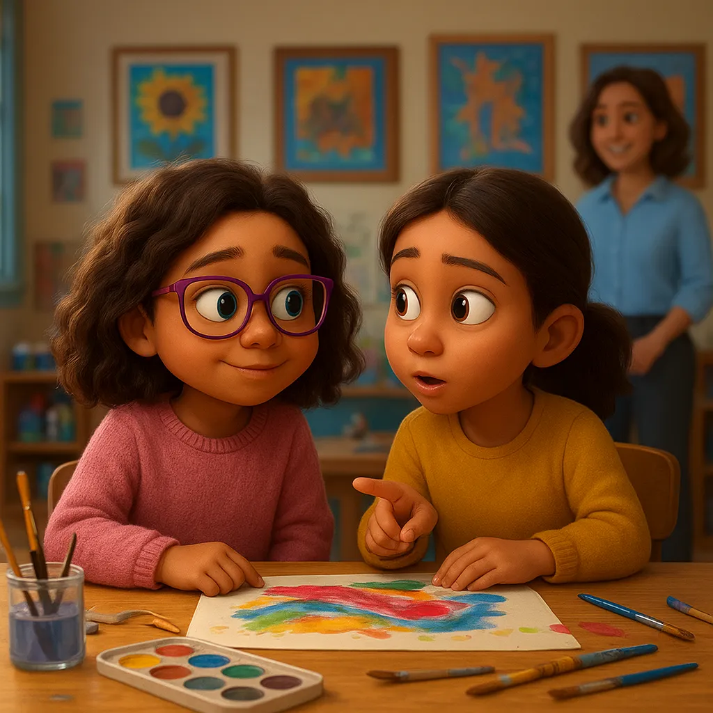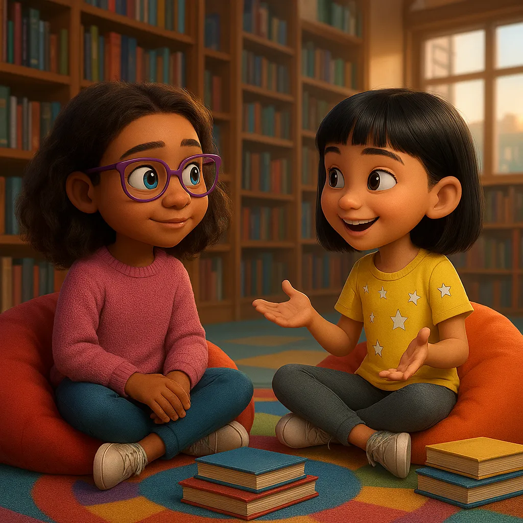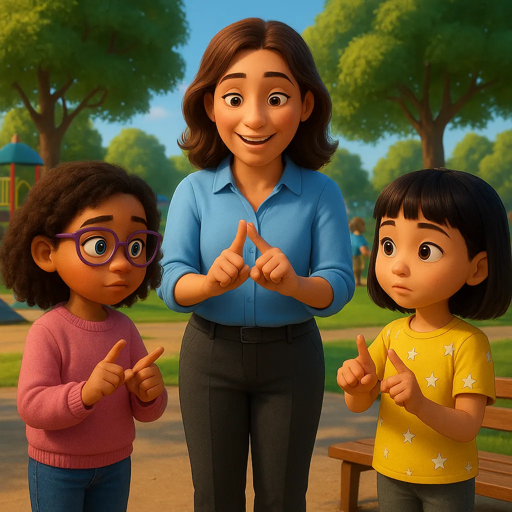 At school, kids share their thoughts in different ways. Some talk with words, some use devices, and others use their hands to show what they mean.