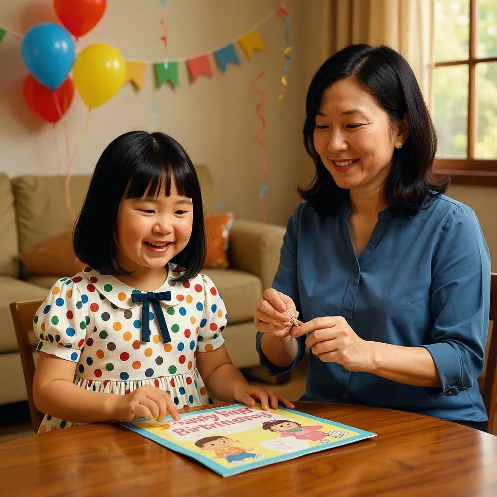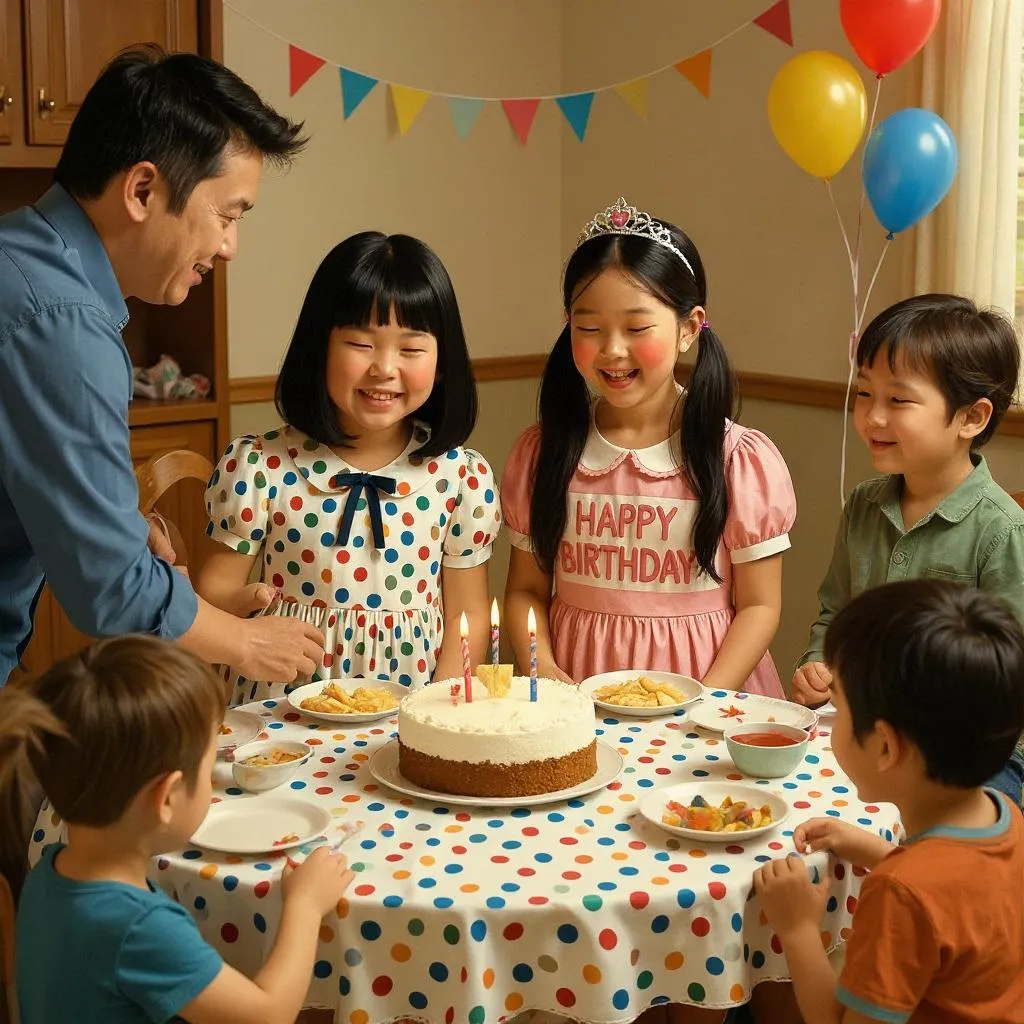 A birthday party is a special celebration when someone turns one year older. Friends come together to celebrate with the birthday person. There are usually fun games, cake, decorations, and presents.