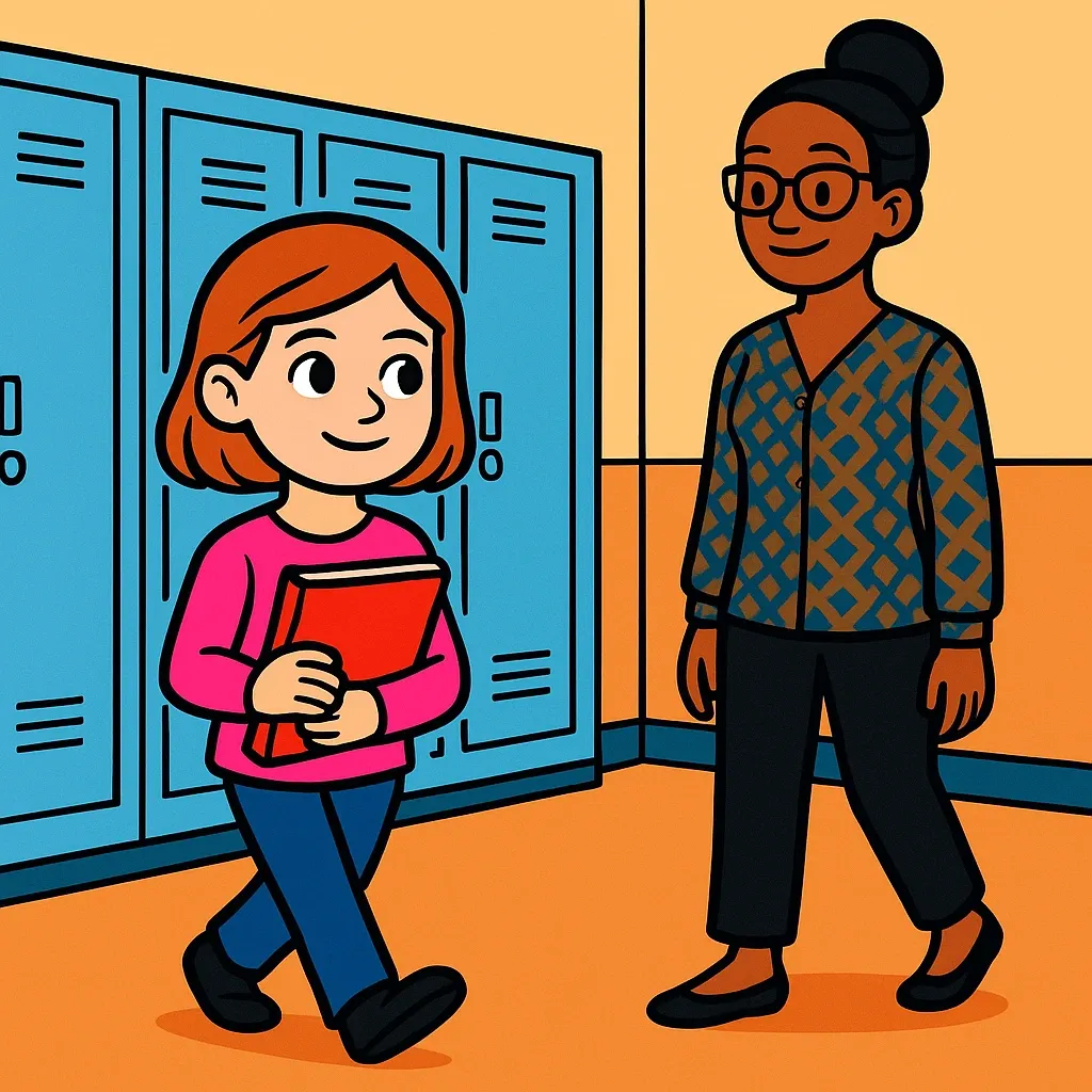 Walking in the hallways keeps everyone safe at school. When I walk instead of run, I can watch where I am going and avoid bumping into others. Walking helps me arrive at my next class safely.