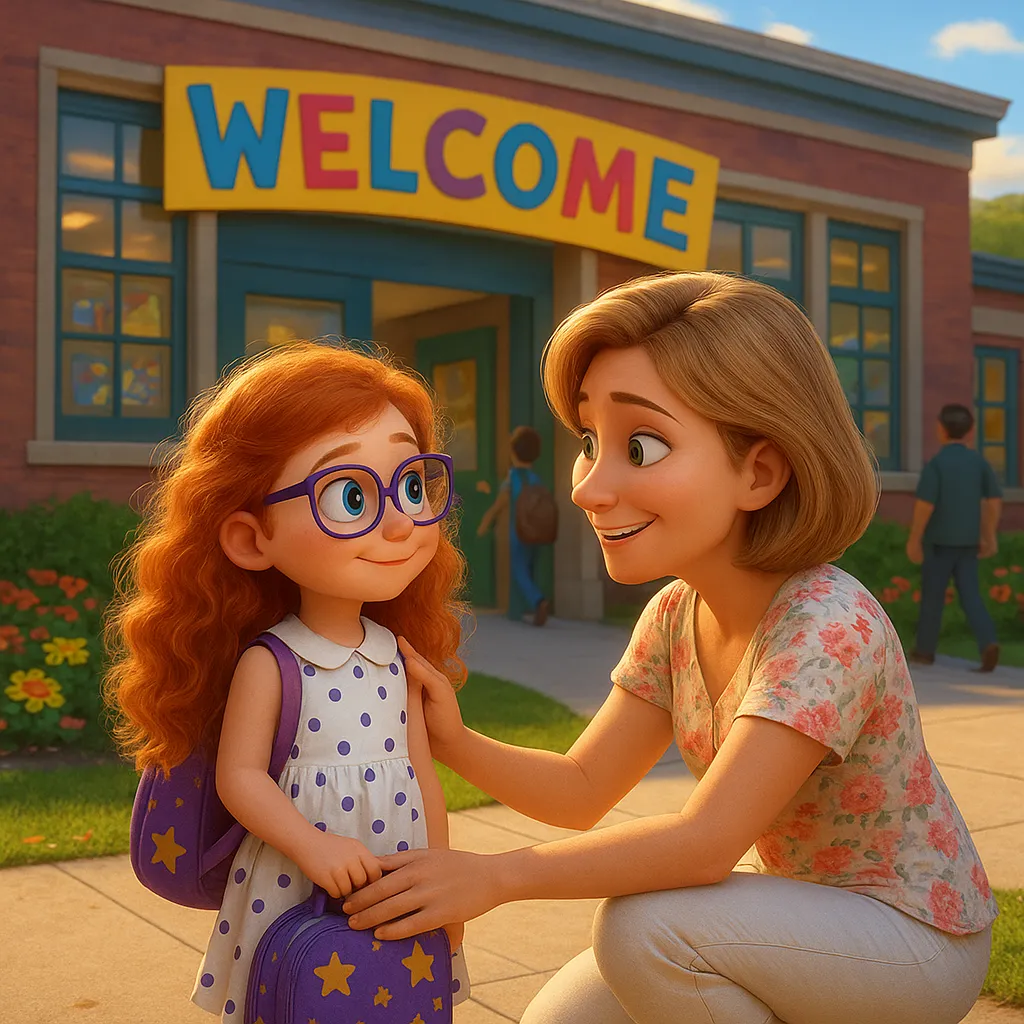 In the morning, Mom will drive me to school and walk me to the front door. I can give Mom a hug before I go inside to start my day.