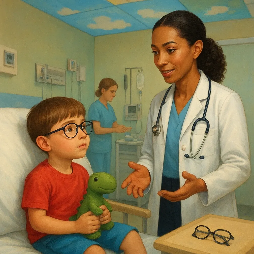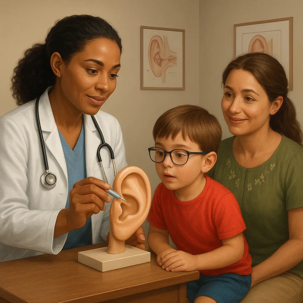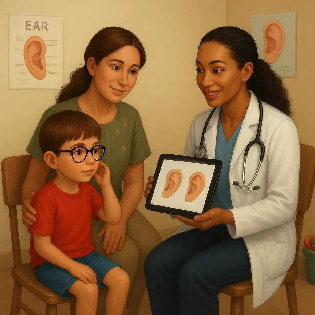 My ears have tiny tubes that are blocked and make it hard to hear. The doctor will fix my ears so sounds can travel better.