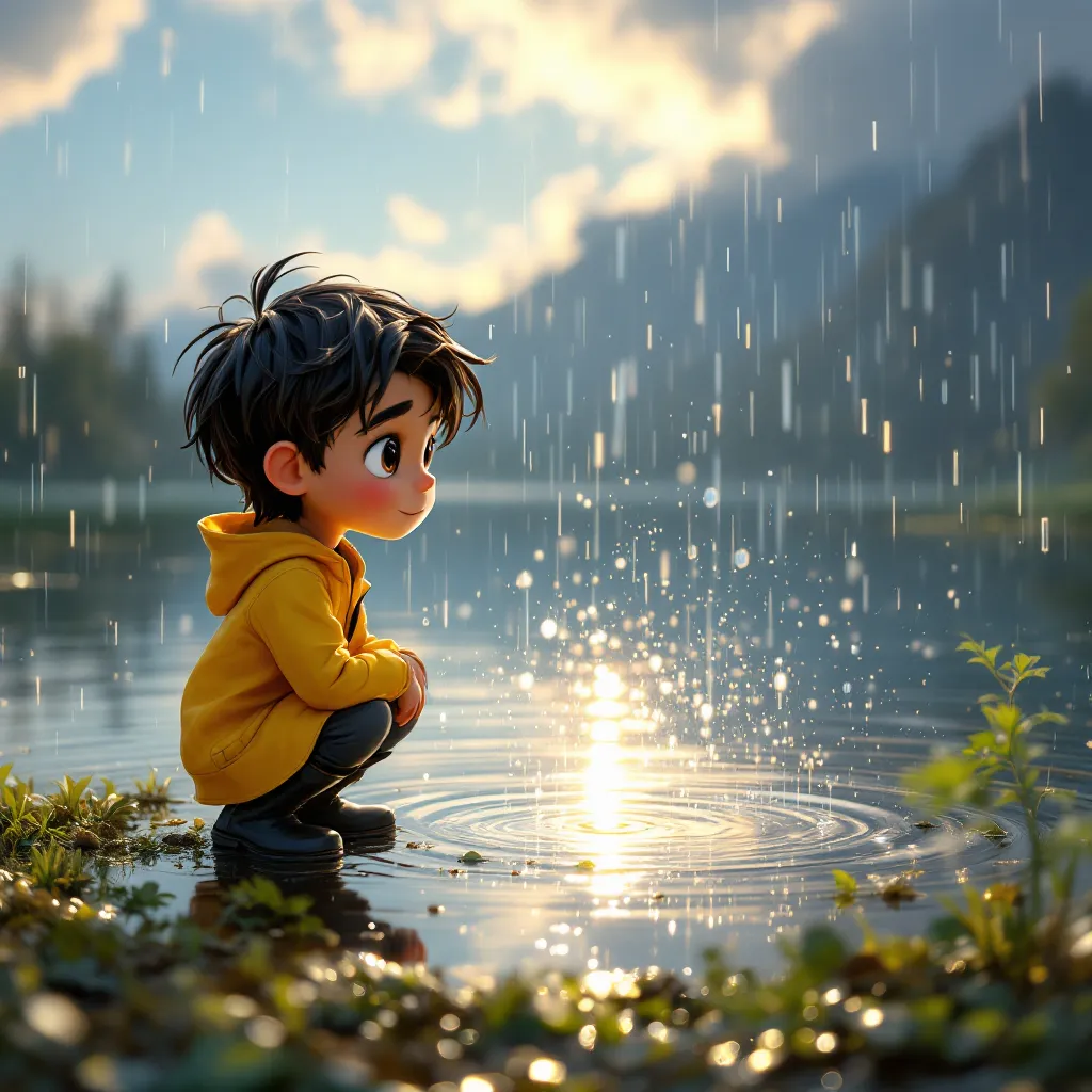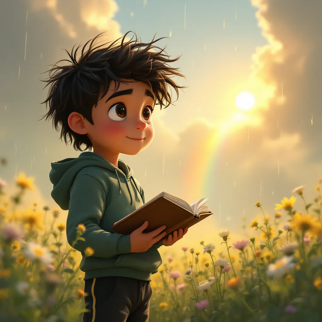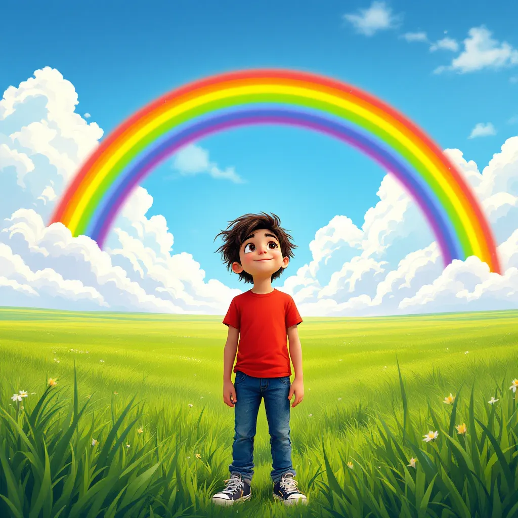 A rainbow is a colorful arc in the sky. It appears when sunlight hits raindrops. Rainbows show a range of colors.