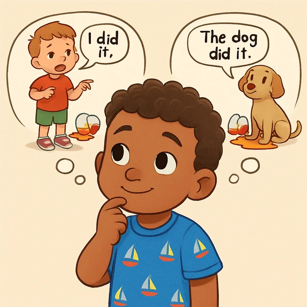 Telling the truth means saying what really happened. When we lie, we say something that isn't real or true.