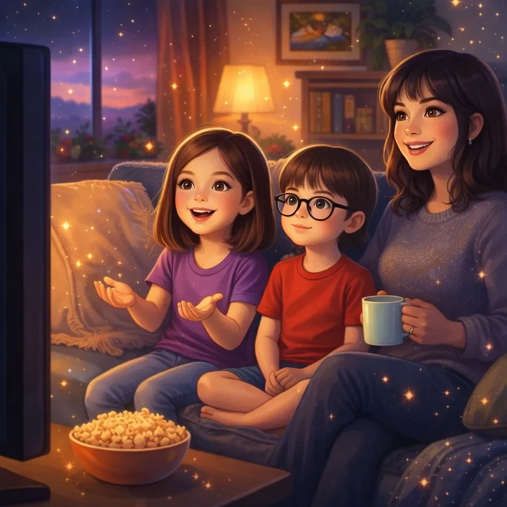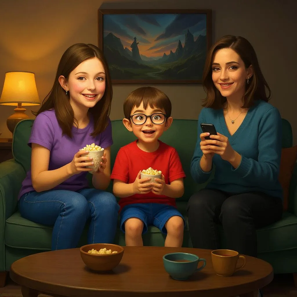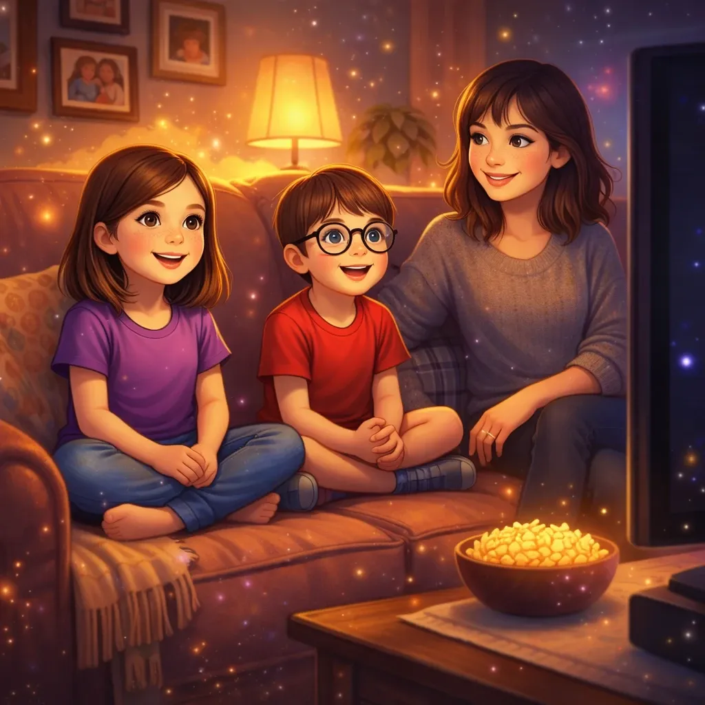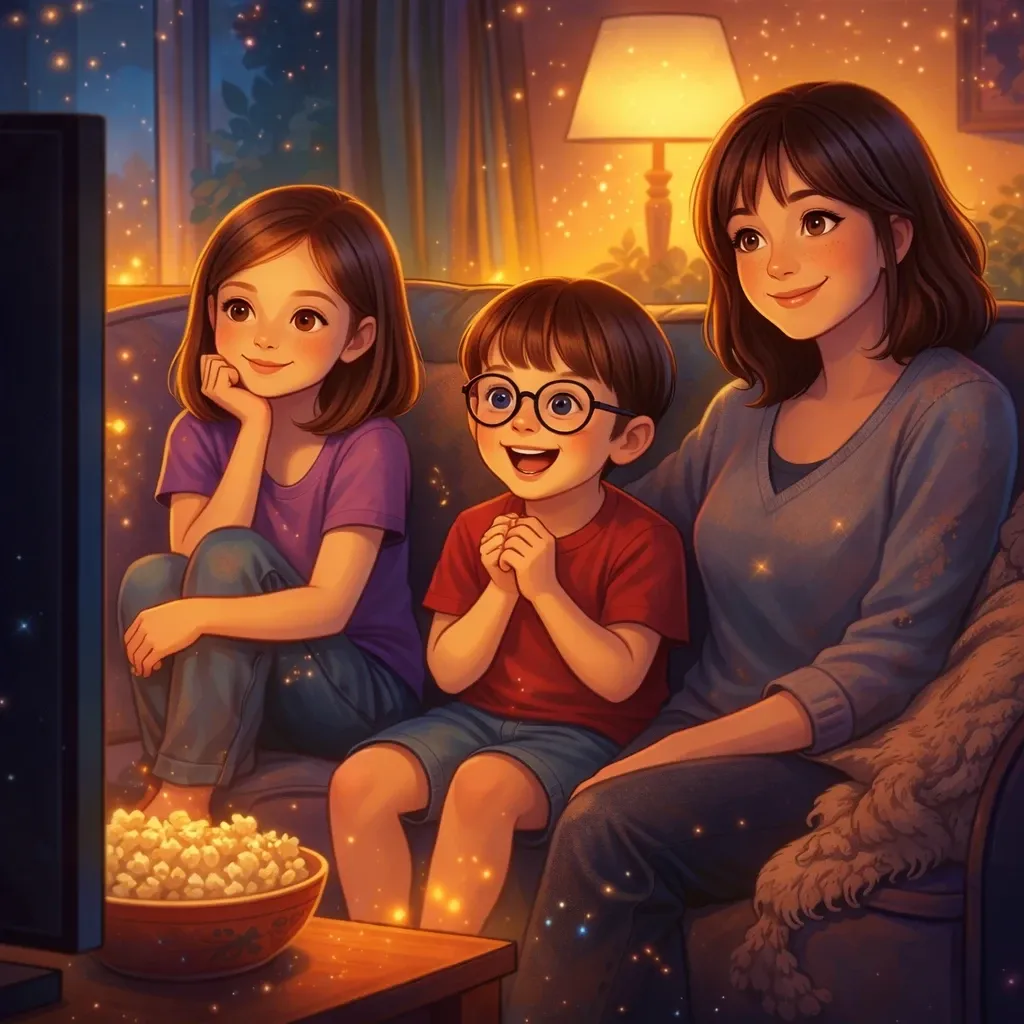 Every week, my family watches a movie together in our living room. We sit on the couch with snacks and enjoy a story together.