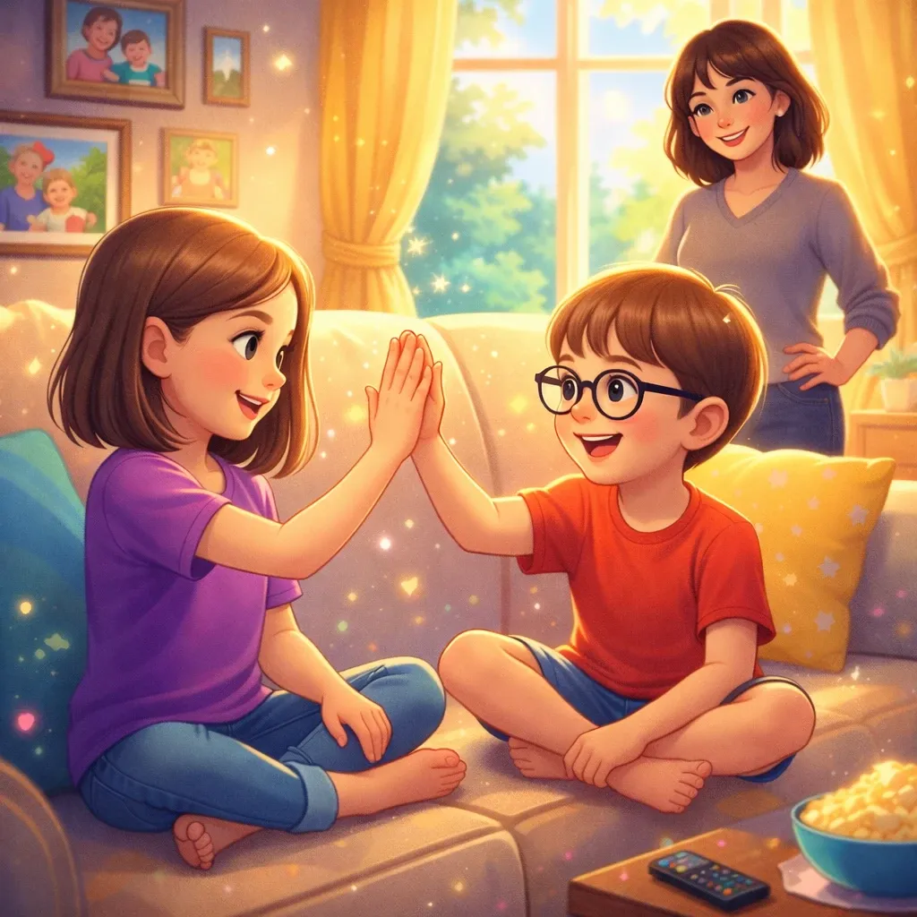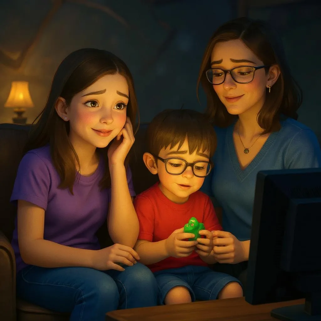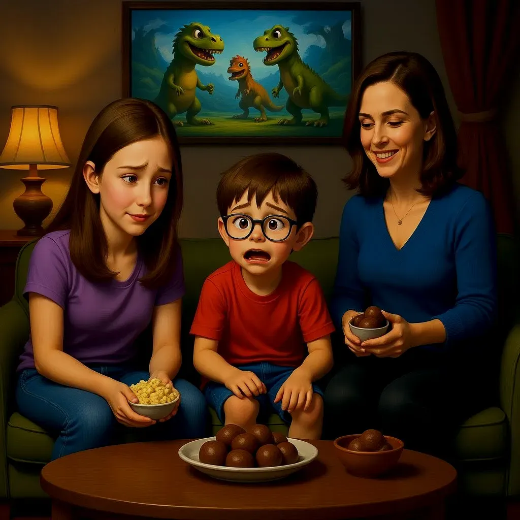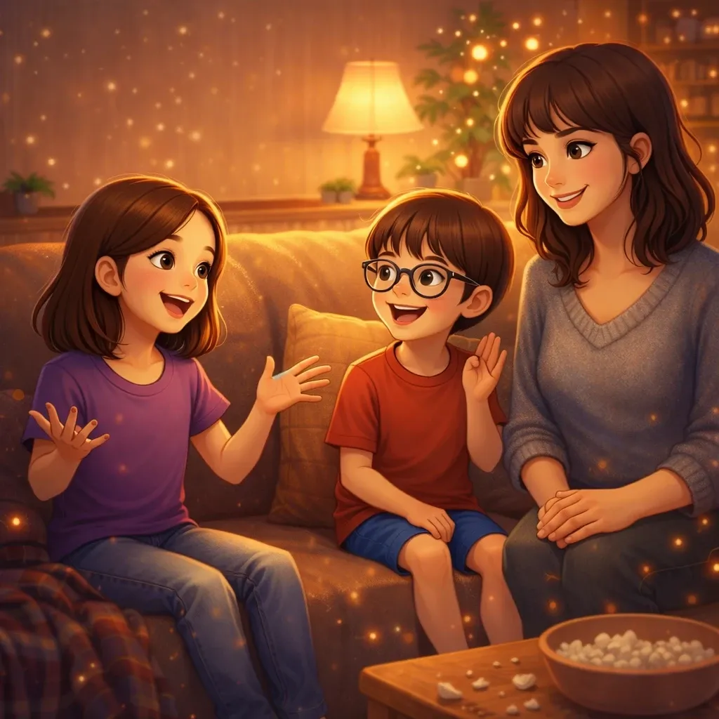 Every week, my family watches a movie together in our living room. We sit on the couch with snacks and enjoy a story together.